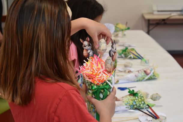 Ce jeudi 10 avril, une douzaine d’enfants ont pu participer à un atelier créatif autour de la traditionnelle chasse aux œufs.