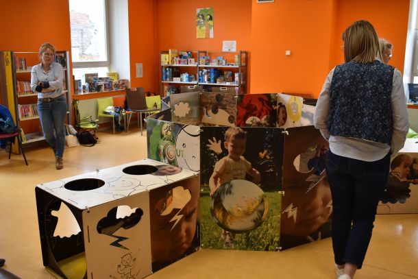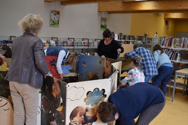 À cette occasion, douze bibliothécaires du réseau départemental ont pu découvrir un nouveau support d’animation qui sera bientôt proposé aux bibliothèques : le module de jeu « Je suis tout un jeu », conçu par Anne Letuffe, autrice-illustratrice. Imaginé à partir de l’album « Je suis tout », le jeu explore les émotions, les sensations, les sens et est réalisé à l’échelle de l’enfant. Il comporte des coussins, des tapis, ou encore des tunnels.