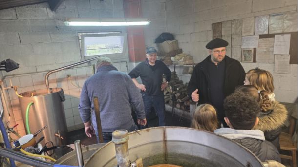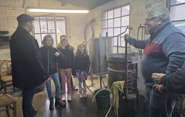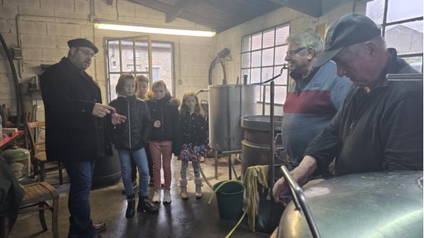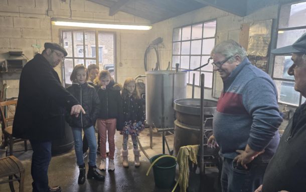 Au détour des rues, deux de nos seniors ont été aperçus à l’alambic communal, en pleine distillation de fruits. Benjamin en a profité pour expliquer aux jeunes élus le fonctionnement de l’alambic et le principe de distillation.