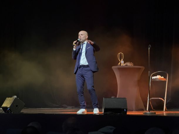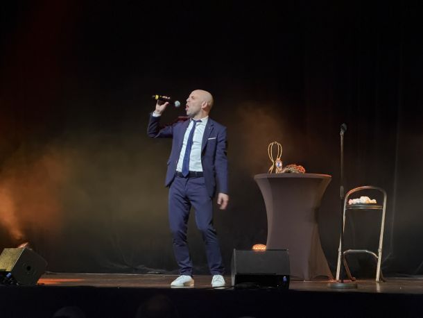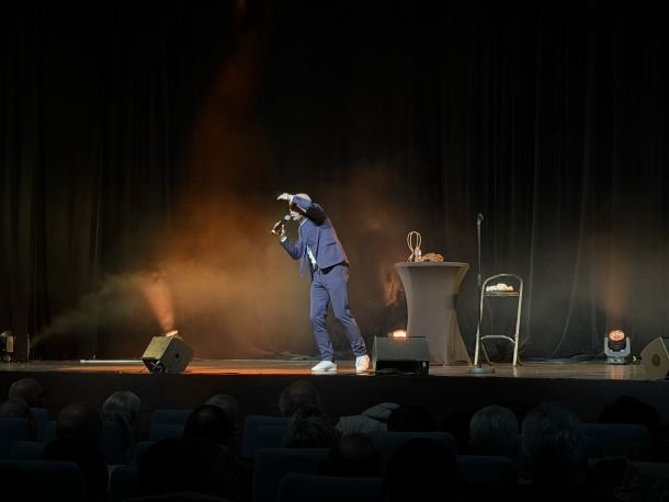En seconde partie de soirée, l’imitateur vocal et humoriste Yann JAMET a offert au public un spectacle plein d’énergie et d’humour. De Chantal Ladesou à Jean-Pierre Foucault, en passant par de nombreuses personnalités politiques, il a revisité l’actualité avec brio pendant près d’une heure.