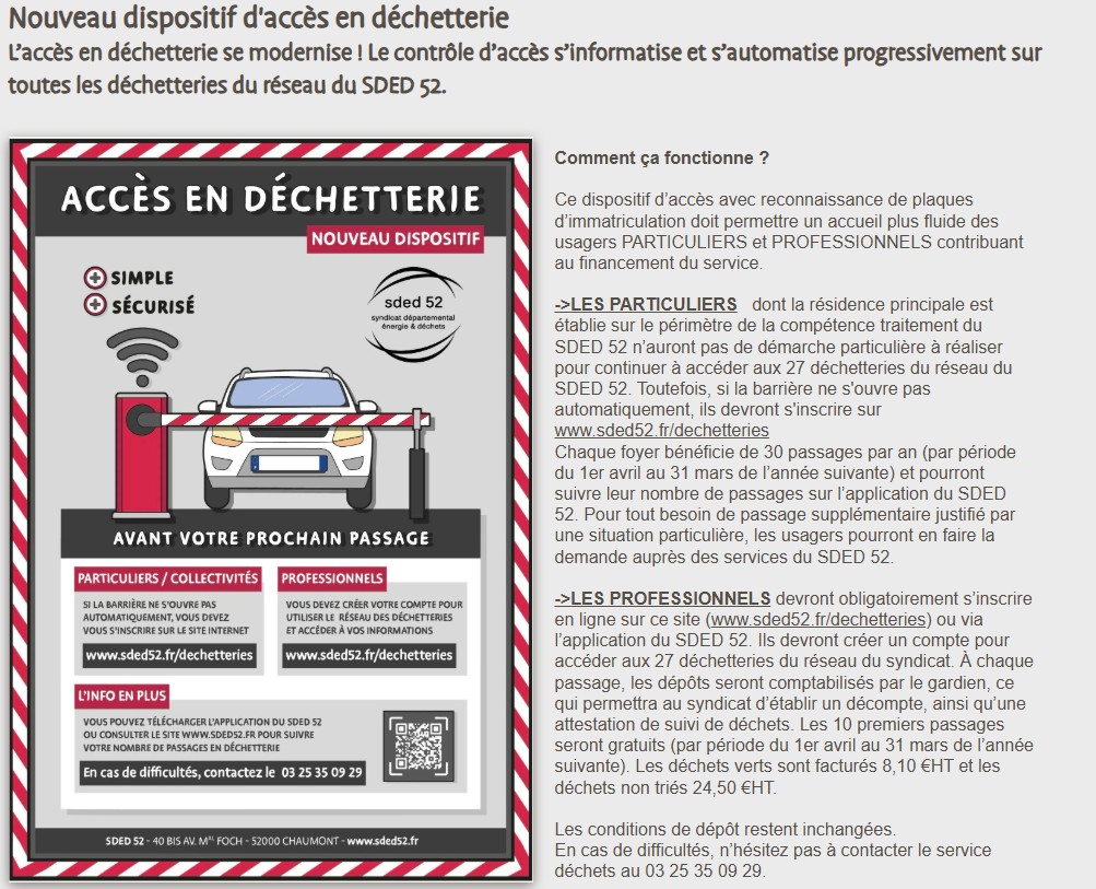 L'accès en déchetterie se modernise ! Le contrôle d'accès s'informatise et s'automatise progressivement sur toutes les déchetteries du réseau du SDED 52.