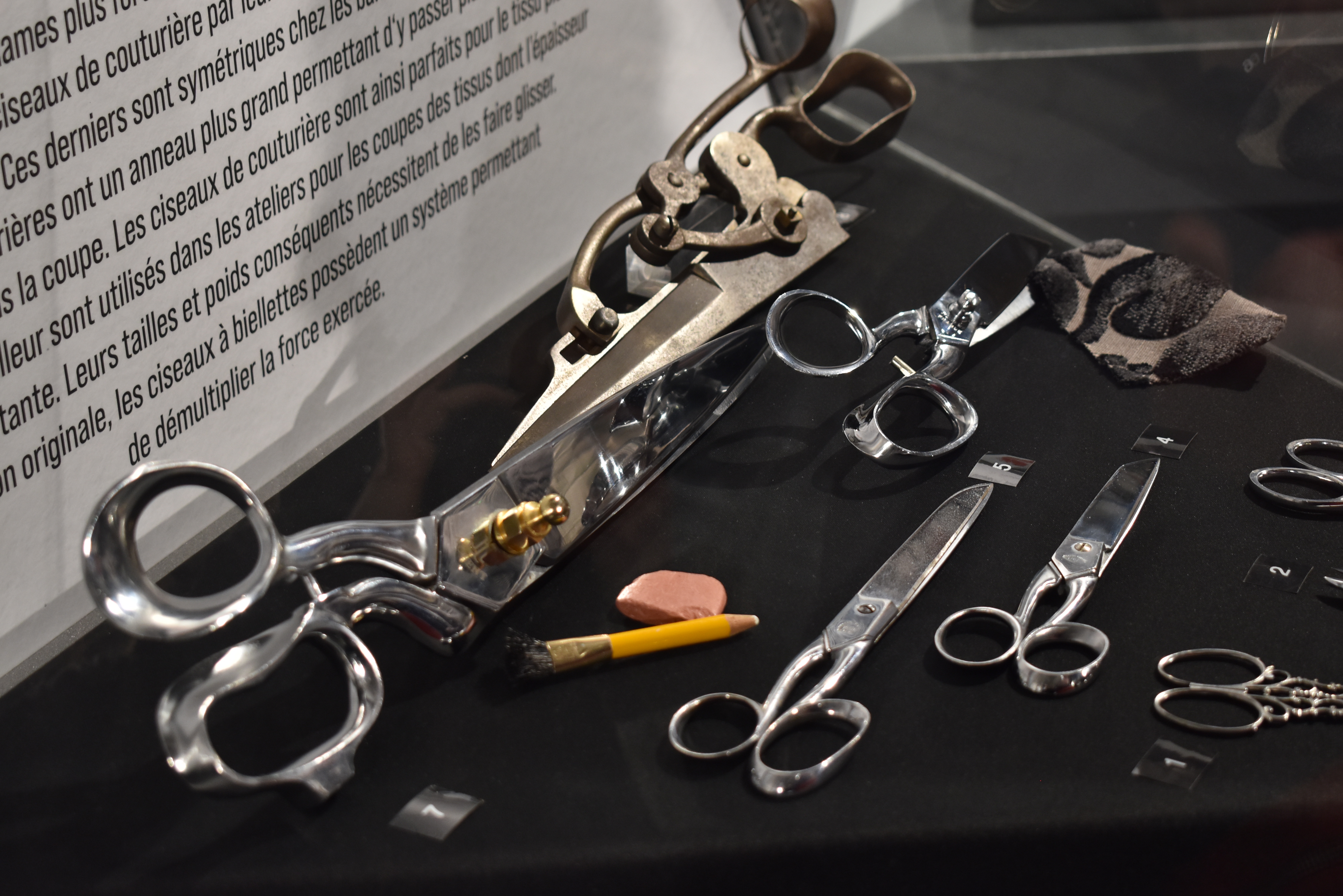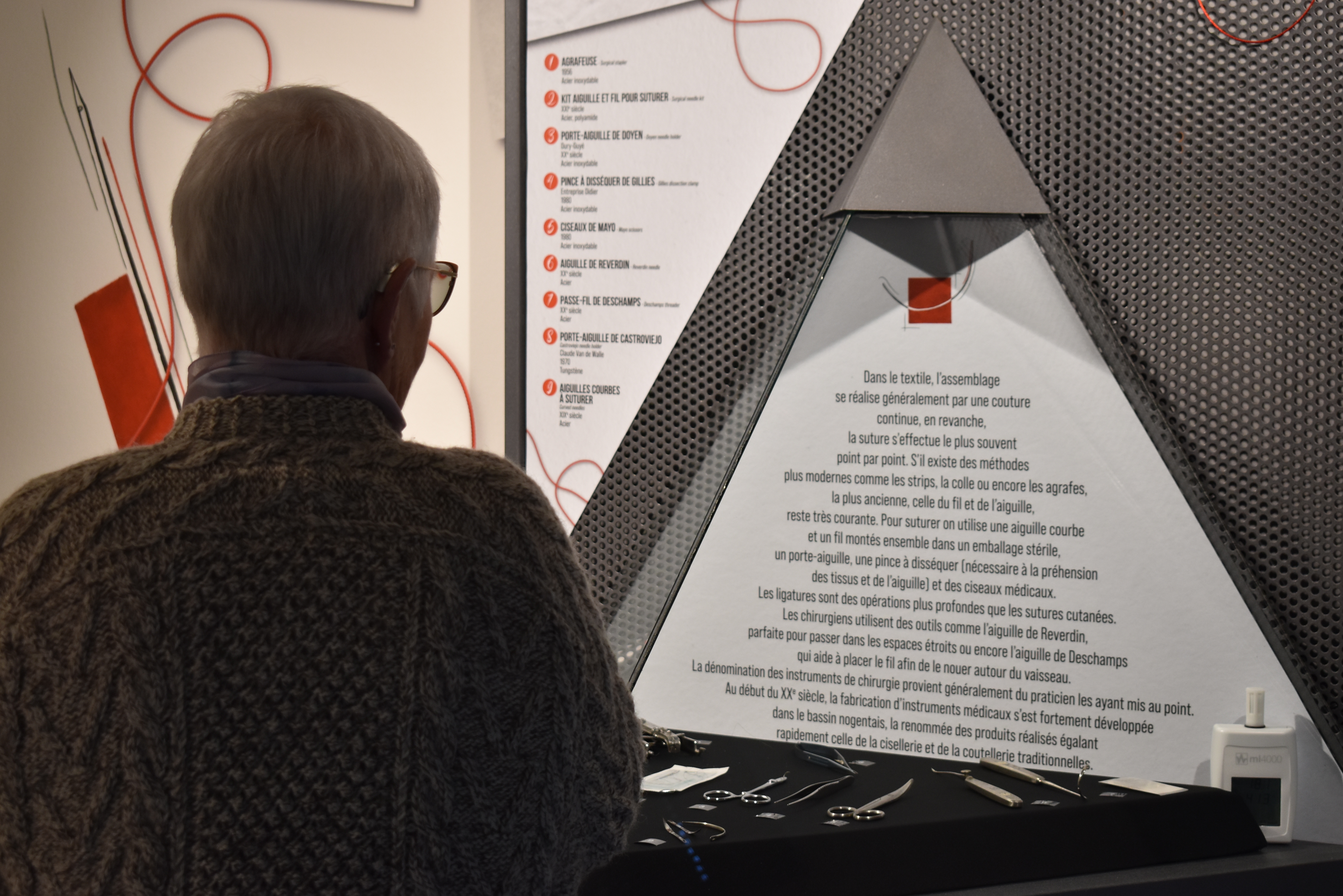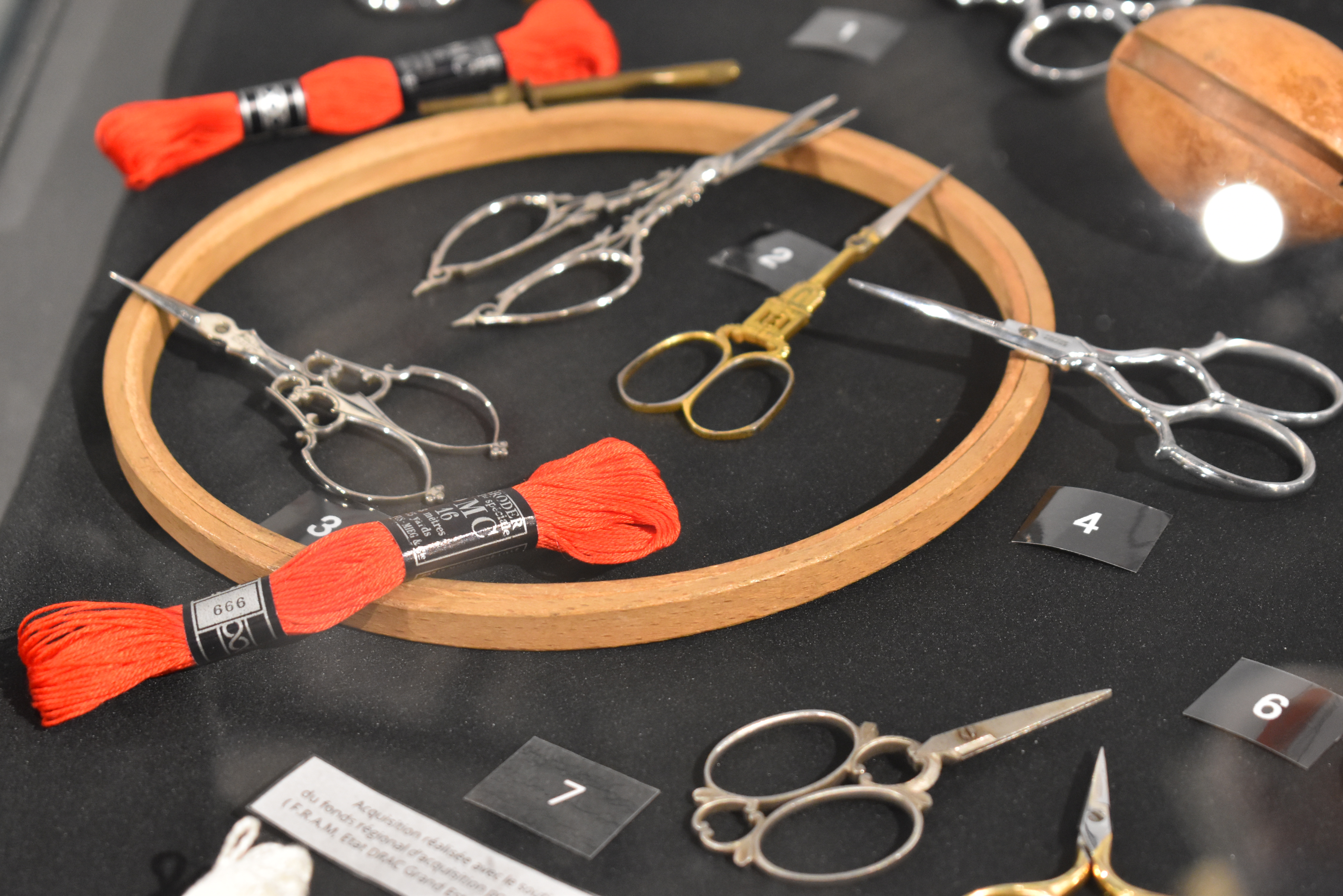 Environ 130 personnes étaient réunies pour découvrir ce travail mené par les équipes du Pôle Culture de Nogent, avec l’appui d’associations et de professionnels. L’exposition met en dialogue le savoir-faire coutelier et les arts du fil : ciseaux de broderie ou de tailleur, dés à coudre, outils liés au cuir, à la dentelle, à la ganterie ou encore à la chapellerie.