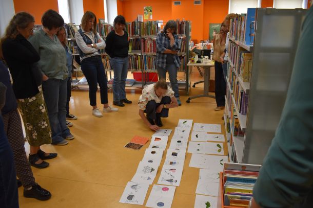 Cette journée a permis aux participantes de s’immerger dans la conception de ce support à destination du jeune public, de le manipuler et d’expérimenter différents ateliers avec l’artiste, afin de préparer de futures médiations au sein de leurs établissements.