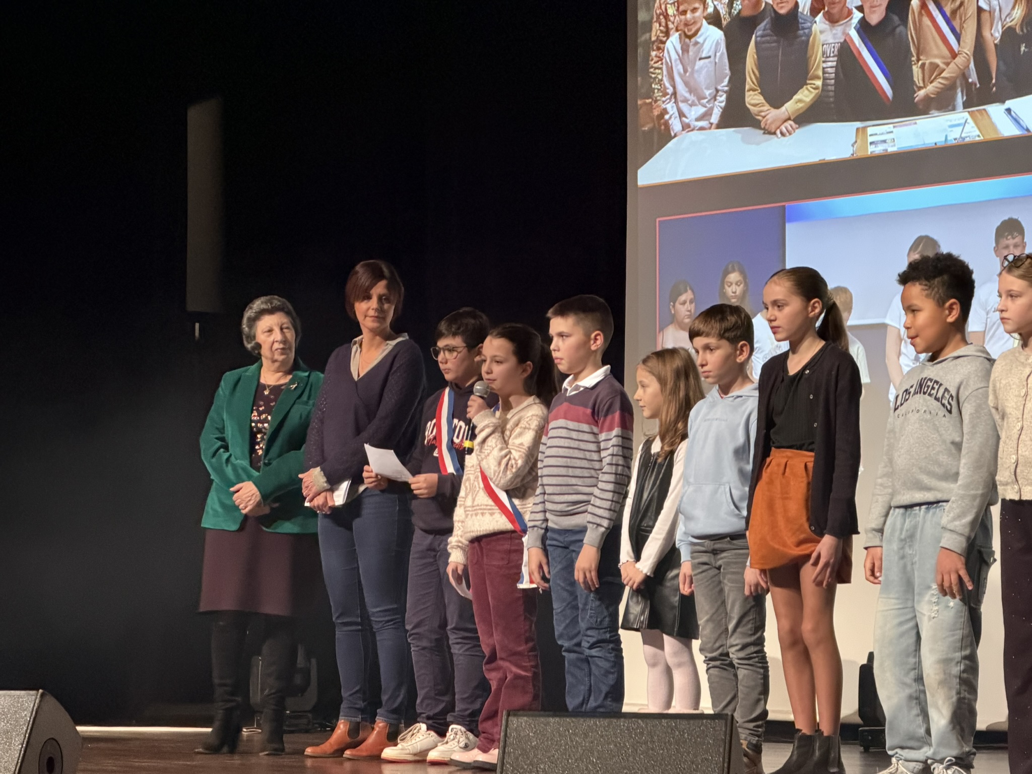 Le nouveau Conseil Municipal des Jeunes, élu en octobre 2025, est également monté sur scène afin de se présenter à la population.