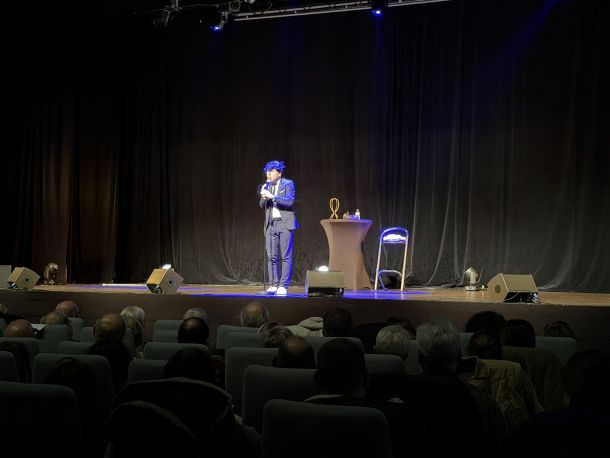 En seconde partie de soirée, l’imitateur vocal et humoriste Yann JAMET a offert au public un spectacle plein d’énergie et d’humour. De Chantal Ladesou à Jean-Pierre Foucault, en passant par de nombreuses personnalités politiques, il a revisité l’actualité avec brio pendant près d’une heure.