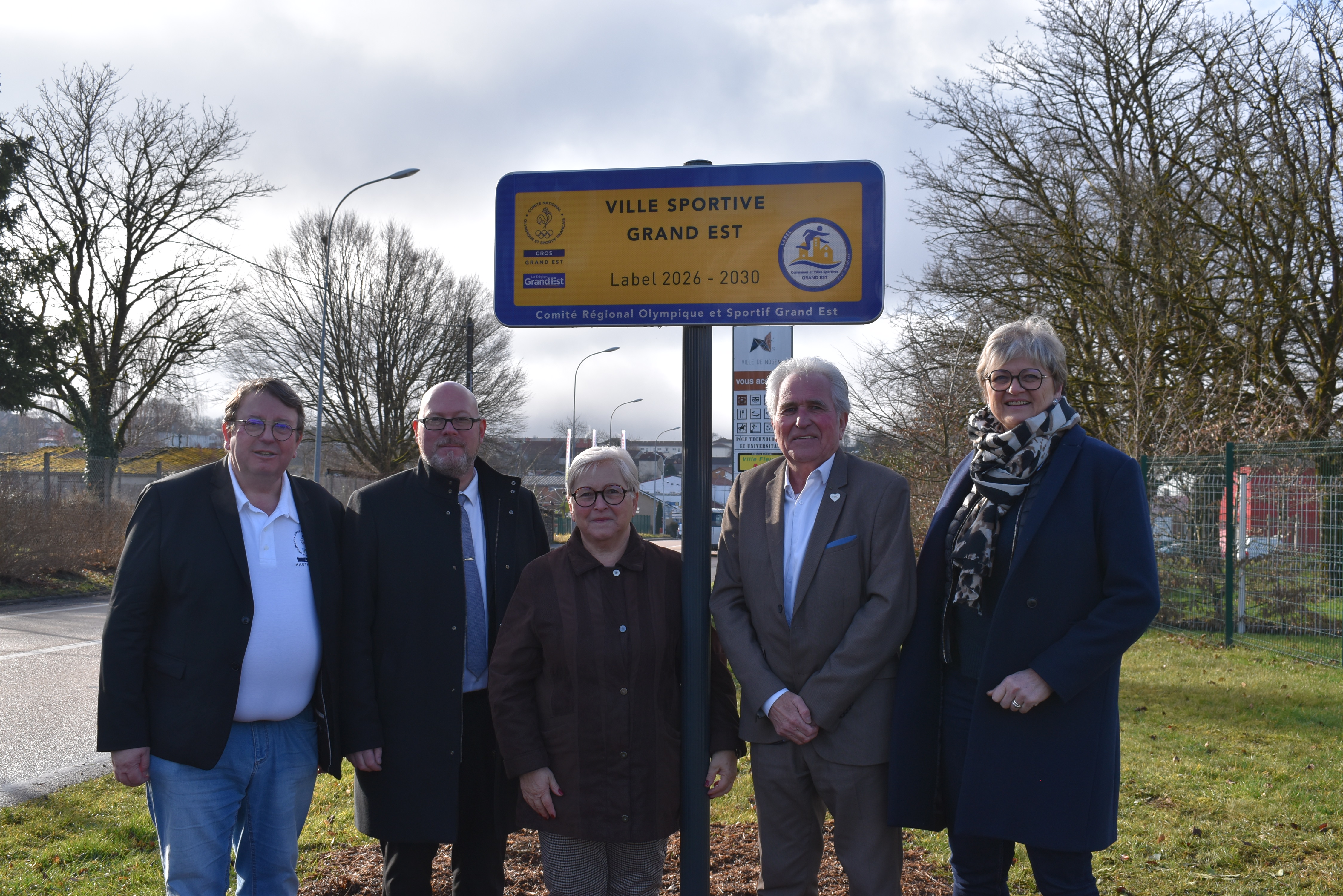 Le dévoilement du panneau a été effectué par Thierry PONCE, Maire de Nogent, et Michel LEQUEUX, Vice-président du CROS Grand Est, en présence de plusieurs élus de la commune, notamment Corinne COLLIER, Adjointe aux Associations et à l'Enfance, et de présidents d’associations nogentaises.