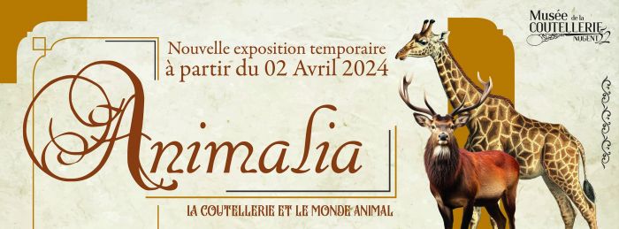 La nouvelle exposition temporaire ANIMALIA, interroge les rapports multiples et complexes entre l’homme et l’animal via le prisme des collections du Musée de la Coutellerie. A travers l’animal ; objet et sujet en coutellerie, elle se veut le reflet de la richesse du savoir-faire coutelier du bassin nogentais sous toutes ses formes : coutellerie fermante, chirurgie, coutellerie de table, usages vétérinaires, couteaux de métier… elle présente des créations s’inscrivant du XVIIIe au XXIe siècle.